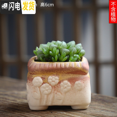 三维工匠可画画上色彩多肉小花盆陶瓷粗陶透气创意肉肉植物盆 咖杏色图片款[2个装] 中等花盆容器