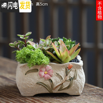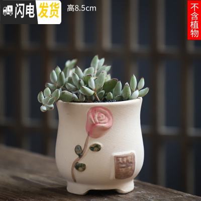 三维工匠可画画上色彩多肉小花盆陶瓷粗陶透气创意肉肉植物盆 藕色图片款[1个装] 中等花盆容器