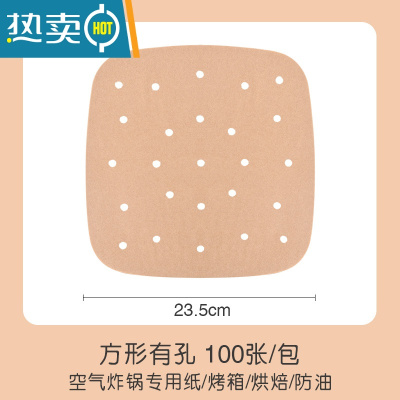 敬平原木色空气炸锅纸垫吸油纸圆形方形家用烤肉烧烤硅油纸 方形黄色23.5cm有孔100张买一份送刷夹烘焙纸