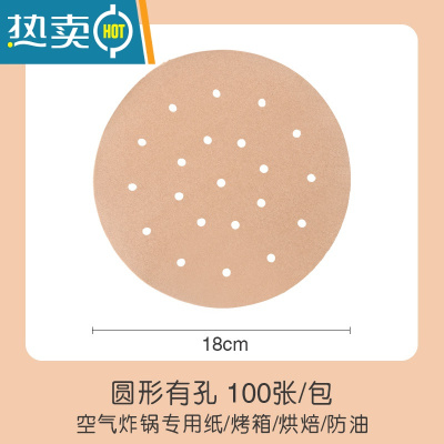 敬平原木色空气炸锅纸垫吸油纸圆形方形家用烤肉烧烤硅油纸 圆形黄色18cm有孔100张买一份送刷夹烘焙纸