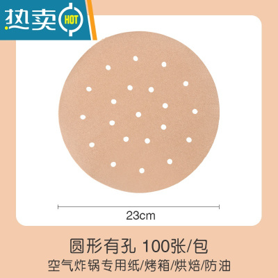 敬平原木色空气炸锅纸垫吸油纸圆形方形家用烤肉烧烤硅油纸 圆形黄色23cm有孔100张买一份送刷夹烘焙纸