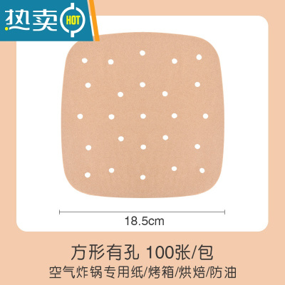 敬平原木色空气炸锅纸垫吸油纸圆形方形家用烤肉烧烤硅油纸 方形黄色18.5cm有孔100张买一份送刷夹烘焙纸