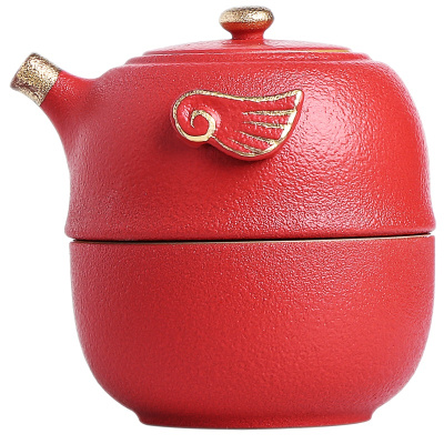 博为黑陶旅行茶具套装户外便携式包快客杯一壶二杯日式车载功夫茶泡茶器 展翅高飞红