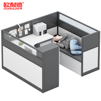 欧耐德职员电脑办公桌午休带床柜屏风工位单人位灰白色
