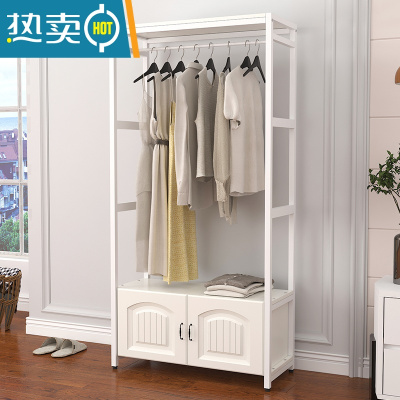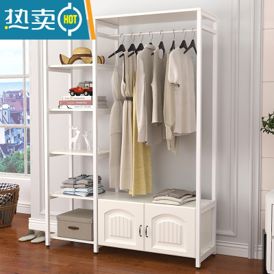 敬平卧室衣帽架简易挂衣架落地收纳创意衣柜欧式家用客厅置物架晾衣架 A款 象牙白+白架(欧式门)90长