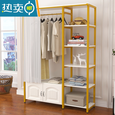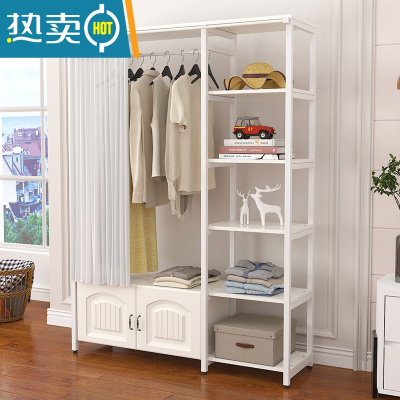敬平卧室衣帽架简易挂衣架落地收纳创意衣柜欧式家用客厅置物架晾衣架 A款象牙白+白架(带帘)100长