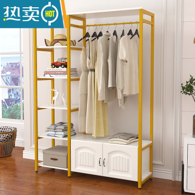敬平卧室衣帽架简易挂衣架落地收纳创意衣柜欧式家用客厅置物架晾衣架 A款象牙白+金架(欧式门)120长