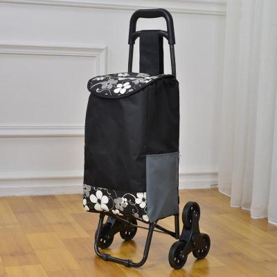 奕辰 6轮可折叠购物车爬楼梯购物车手拉小推车 黑底梅花