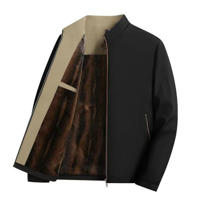 秋冬中老年男士商务加绒加厚夹克宽松爸爸外套立领休闲父亲装