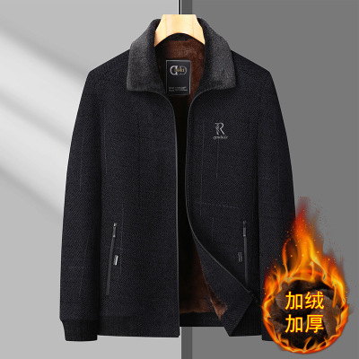 年冬装爸爸装加绒加厚雪尼尔外套保暖男士中年冬款加绒夹克