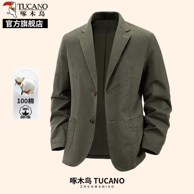 啄木鸟纯棉休闲西装外套男士西服2025新款秋冬中年商务行政夹克K