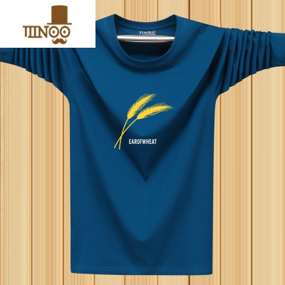 YANXU男长袖t恤加大码宽松休闲打底衫胖子潮流印花内搭秋衣男装T恤