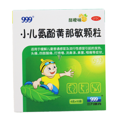 999小儿氨酚黄那敏颗粒6g*10袋用于缓解儿童普通感冒及流行性感冒引起的发热 头痛 四肢酸痛 打喷嚏 流鼻涕 鼻塞