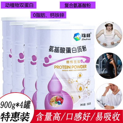珠峰0脂复合多种氨基酸蛋白质粉900g*4罐男女成人学生运动员健身增肌增重爱好者双蛋白乳清蛋白粉蛋白营养粉增建肌营养品