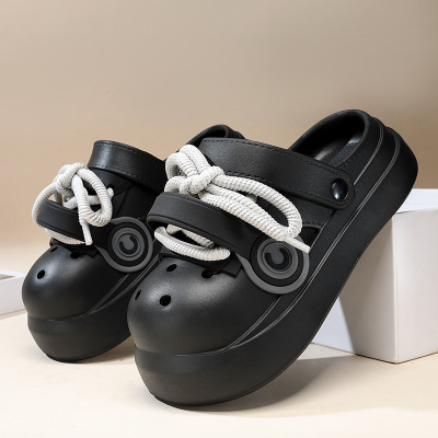 5.0踩屎感厚底增高情侣洞洞鞋透气舒适包头沙滩防滑度假休闲凉鞋