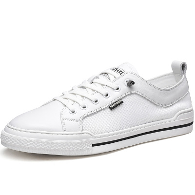 男生头层牛皮白色板鞋男款潮鞋真皮欧洲站男鞋平底透气百搭休闲鞋