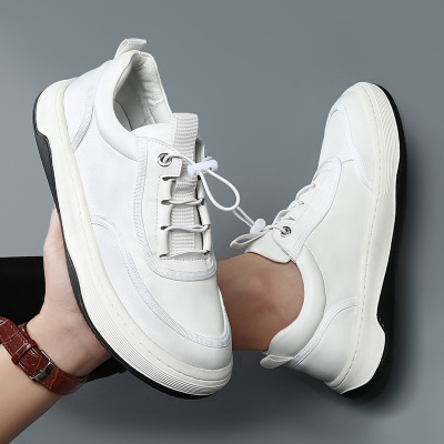聚范男鞋夏季2024新款皮面防水防滑运动增高小白板鞋休闲上班工作潮鞋