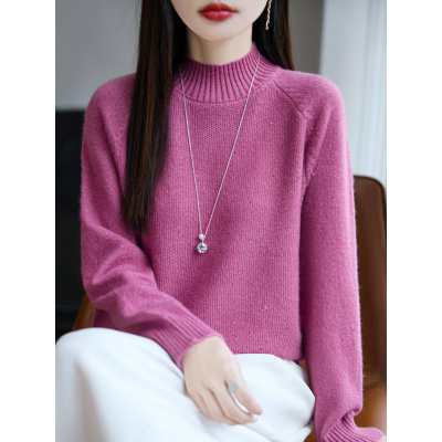 浣熊绒珠片半高领毛衣打底衫女秋冬新款宽松套头百搭打底针织衫女