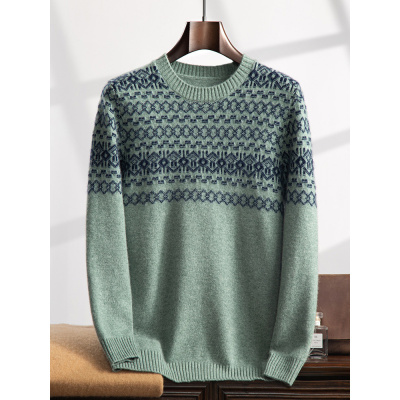 山羊绒衫男圆领时尚提花毛衣宽松针织打底衫套头上衣拼色内搭打底