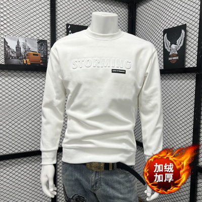 新款加绒加厚卫衣时尚圆领休闲打底衫秋冬内搭上衣潮