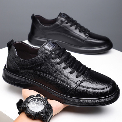 头层牛皮男鞋秋季新款男士休闲皮鞋男时尚百搭鞋英伦系带款单皮鞋