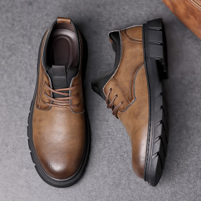 男鞋春季2025潮流新款商务休闲大头皮鞋男士厚底工装板鞋工作鞋子