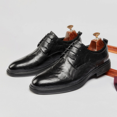 男士商务正装皮鞋英伦圆头德比鞋真皮休闲系带男鞋透气新郎婚鞋男