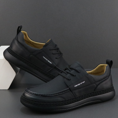 男款头层牛皮皮鞋欧洲站男鞋男士真皮歪头休闲鞋百搭潮流板鞋