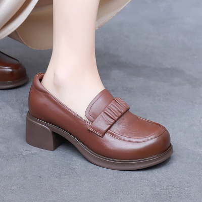 真皮厚底休闲乐福鞋2025春秋新款润月百搭圆头英伦粗跟软底小皮鞋