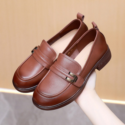 真皮厚底休闲乐福鞋25年春秋新款百搭圆头英伦粗跟软底复古小皮鞋