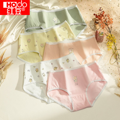 红豆21年新款女士中腰舒适棉氨内裤女式卡通印花甜美少女风三角内裤组合(五条装)