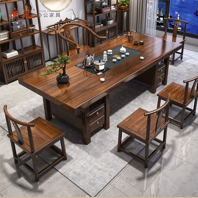 质凡新中式大板茶桌椅组合办公室实木茶桌茶台茶桌椅