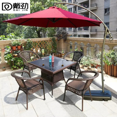 戴劲藤椅阳台桌椅室外庭院藤编椅子花园茶几藤椅组合 4椅+90方桌+地中海伞