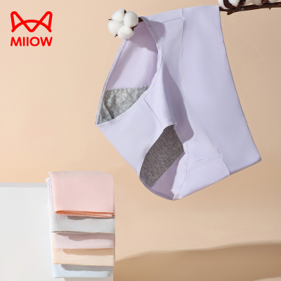 [3条装]猫人生理内裤女纯棉透气无痕高腰月经期防漏大姨妈卫生裤