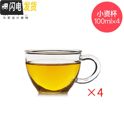 三维工匠小资花茶杯子 咖啡杯 耐热玻璃品茶杯品茗杯 功夫茶具配件 小资杯无碟100(4个)