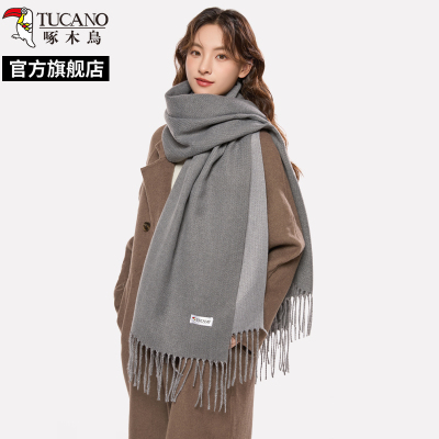 啄木鸟2025新款灰色纯色双面围巾女冬季保暖高级感时尚文艺围脖