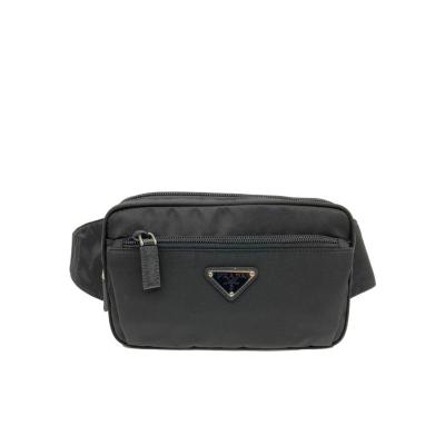 普拉达(PRADA)撞色徽标装饰尼龙皮革男士女士多功能休闲腰包