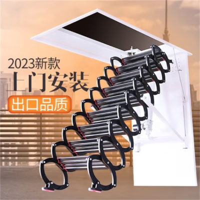 通向楼顶伸缩梯 沐源电动阁楼伸缩楼梯全自动钛镁合金升降隐形折叠梯子别墅家用收缩梯