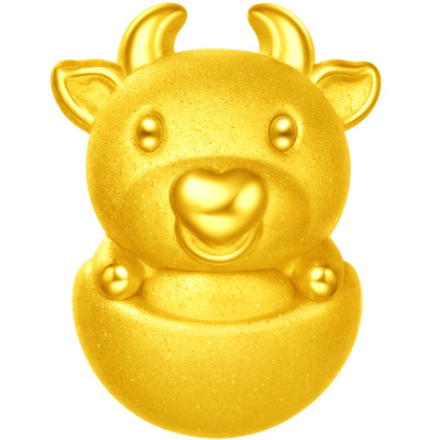 [2020新款]老庙黄金吊坠足金可爱生肖牛本命年比心牛挂坠