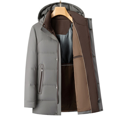 秋冬新款牛奶丝面料中长款羽绒服男士白鸭绒防寒保暖休闲男羽绒服