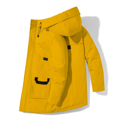 冬装加厚中长款羽绒服男户外工装保暖连帽潮牌青年时尚男士羽绒服