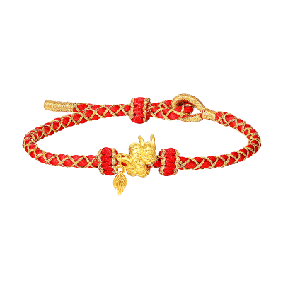新金珠宝 黄金生肖龙手链足金999龙转乾坤本命年转运珠情侣红手绳1042