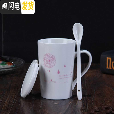 三维工匠茶水杯茶杯保温杯潮流北欧容量陶瓷杯杯子欧式口杯喝水 个性 创意 蒲公英红带陶瓷盖陶瓷勺