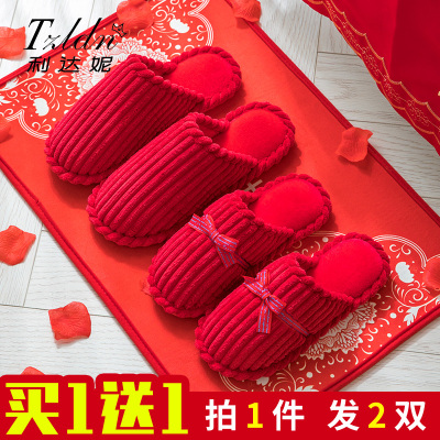 结婚拖鞋红色一对婚庆喜庆新娘家用室内保暖情侣棉拖鞋女秋冬957
