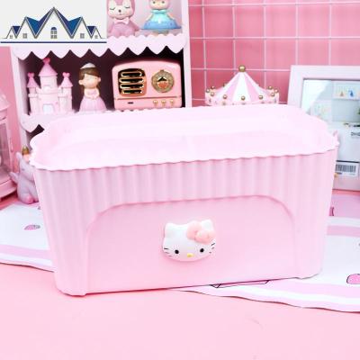 塑料收纳箱卡通化妆品储物箱可爱桌面收纳盒零食玩具文具整理箱子 三维工匠