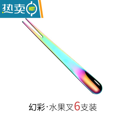 敬平304不锈钢水果叉甜品叉签两用叉勺甜品勺雪糕勺搅拌勺月饼小叉子 幻彩[6支装]牙签