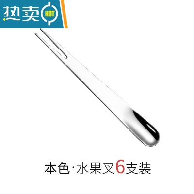 敬平304不锈钢水果叉甜品叉签两用叉勺甜品勺雪糕勺搅拌勺月饼小叉子 本色[6支装]牙签