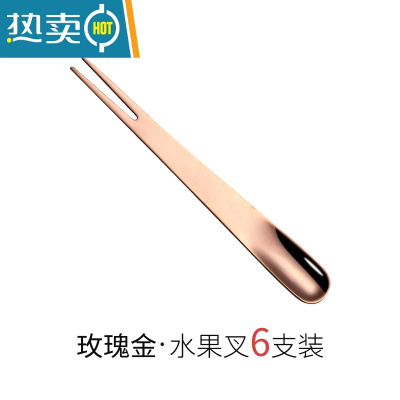 敬平304不锈钢水果叉甜品叉签两用叉勺甜品勺雪糕勺搅拌勺月饼小叉子 玫瑰金[6支装]牙签