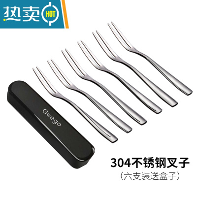 敬平欧式水果小叉子 304不锈钢水果叉套装儿童可爱家用甜品蛋糕月饼签 304方柄水果叉6支装 送盒子牙签