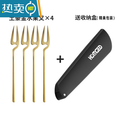 敬平水果叉套装创意可爱304不锈钢小叉子家用月饼插果签水果蛋糕叉具 挂壁水果叉土豪金4只装(送收纳盒)